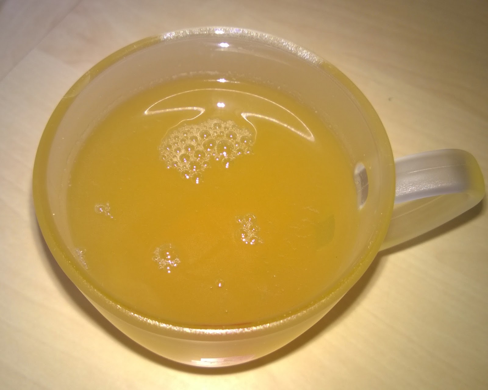 Was man leider auf dem Bild nicht erkennt, sind die Pfirsichstücke, die im Tee vorhanden sind.